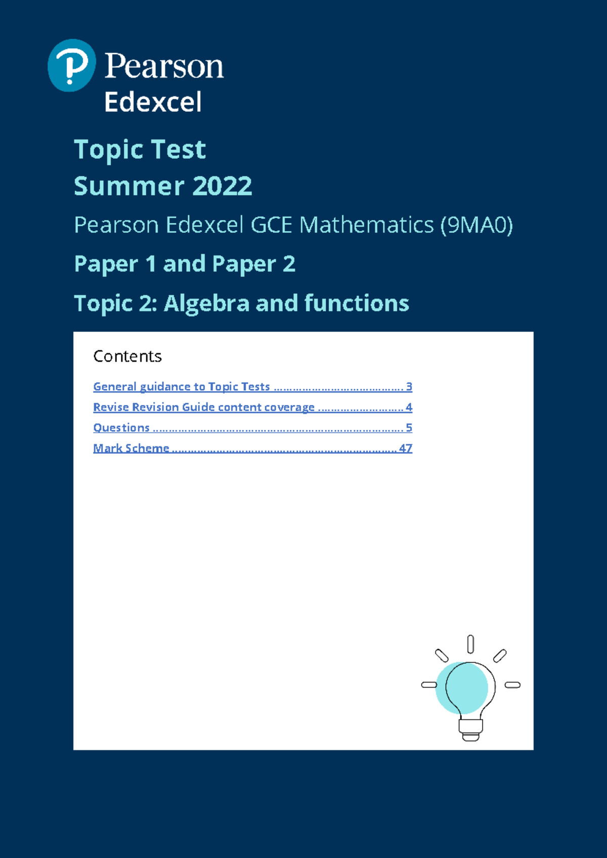 02 - Algebra and Functions - Topic Test Summer 2022 Pearson Edexcel GCE ...