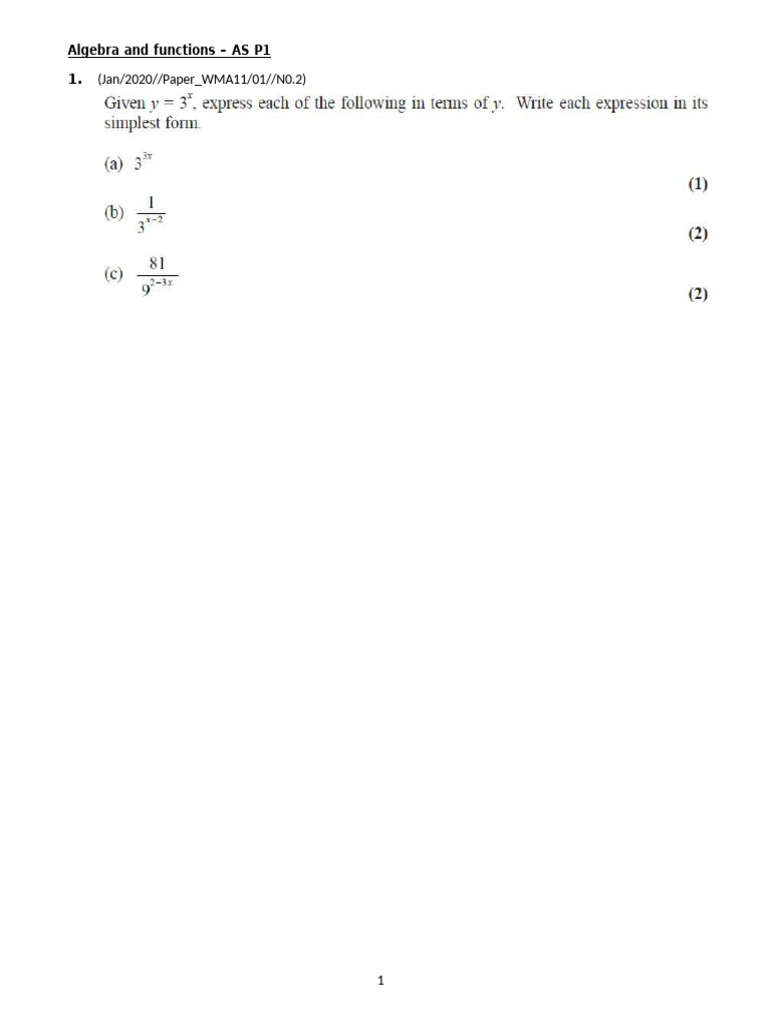 P1 Algebra and Functions AS Edexcel IAL | PDF