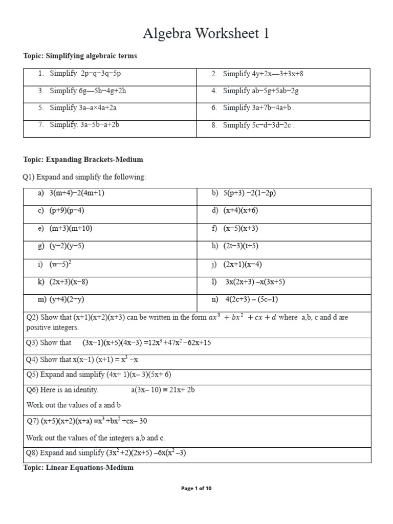 Algebra Worksheet 1 Pearson Edexcel IGCSE | PDF | Area | Rectangle