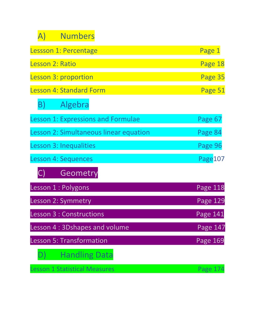 Algebra Table of Contents, Blank PAGE, PG 1,2 - Studocu