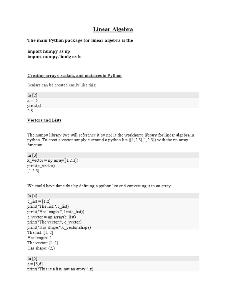 Session 4 5 - Linear Algebra in Python | PDF | Matrix (Mathematics ...