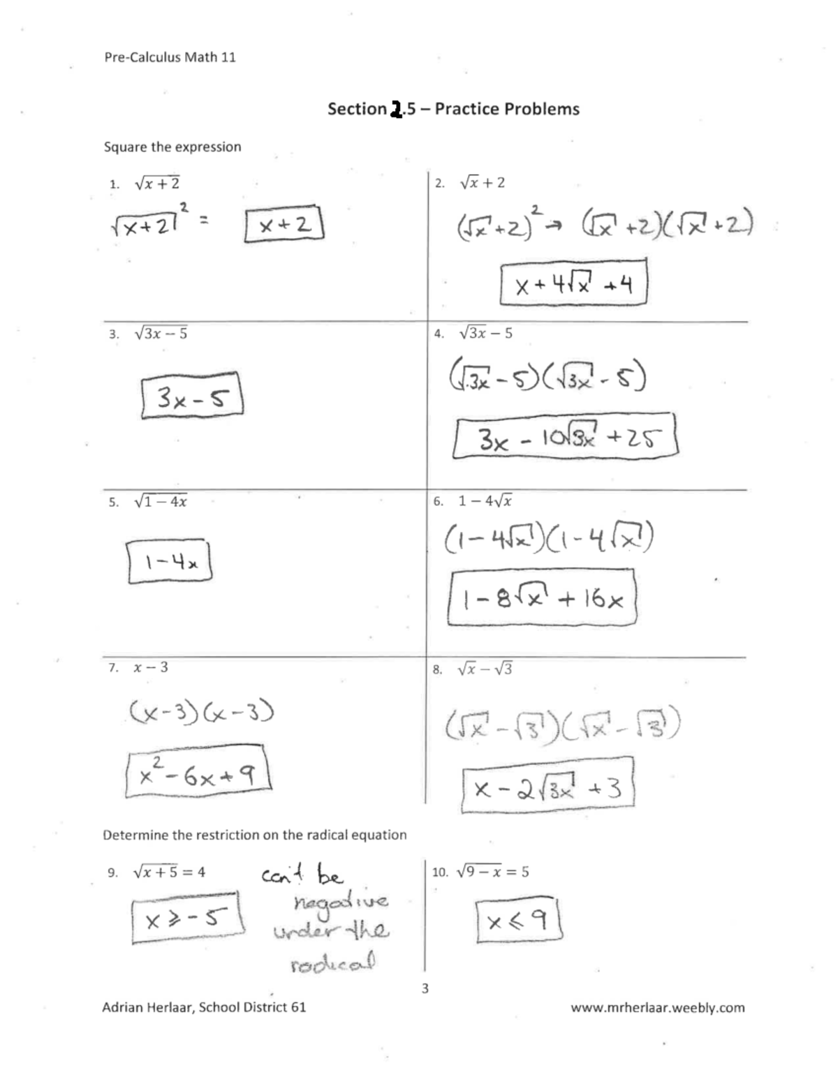 Math 11 Q.5 Practice Problems: Radical Equations & Graphs - Studocu