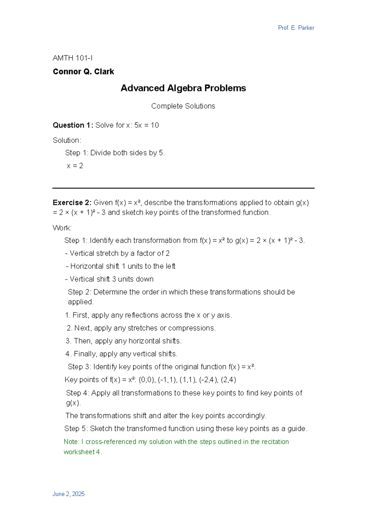 MATH 172-E Advanced Algebra Problems & Solutions Guide - Studocu