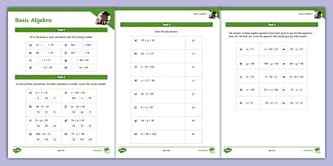 Basic Algebra - Introduction, Equations, Problems and Worksheets
