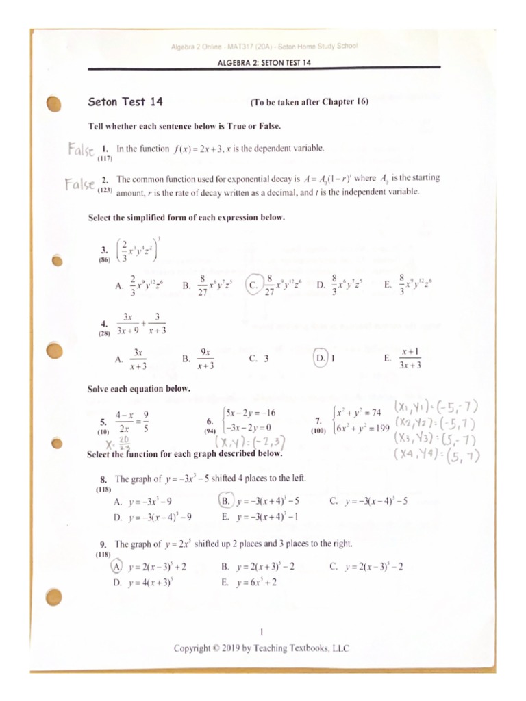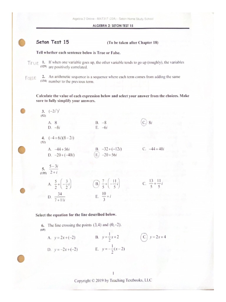 Algebra 2 Online MAT317 20A Seton Home Study School | PDF