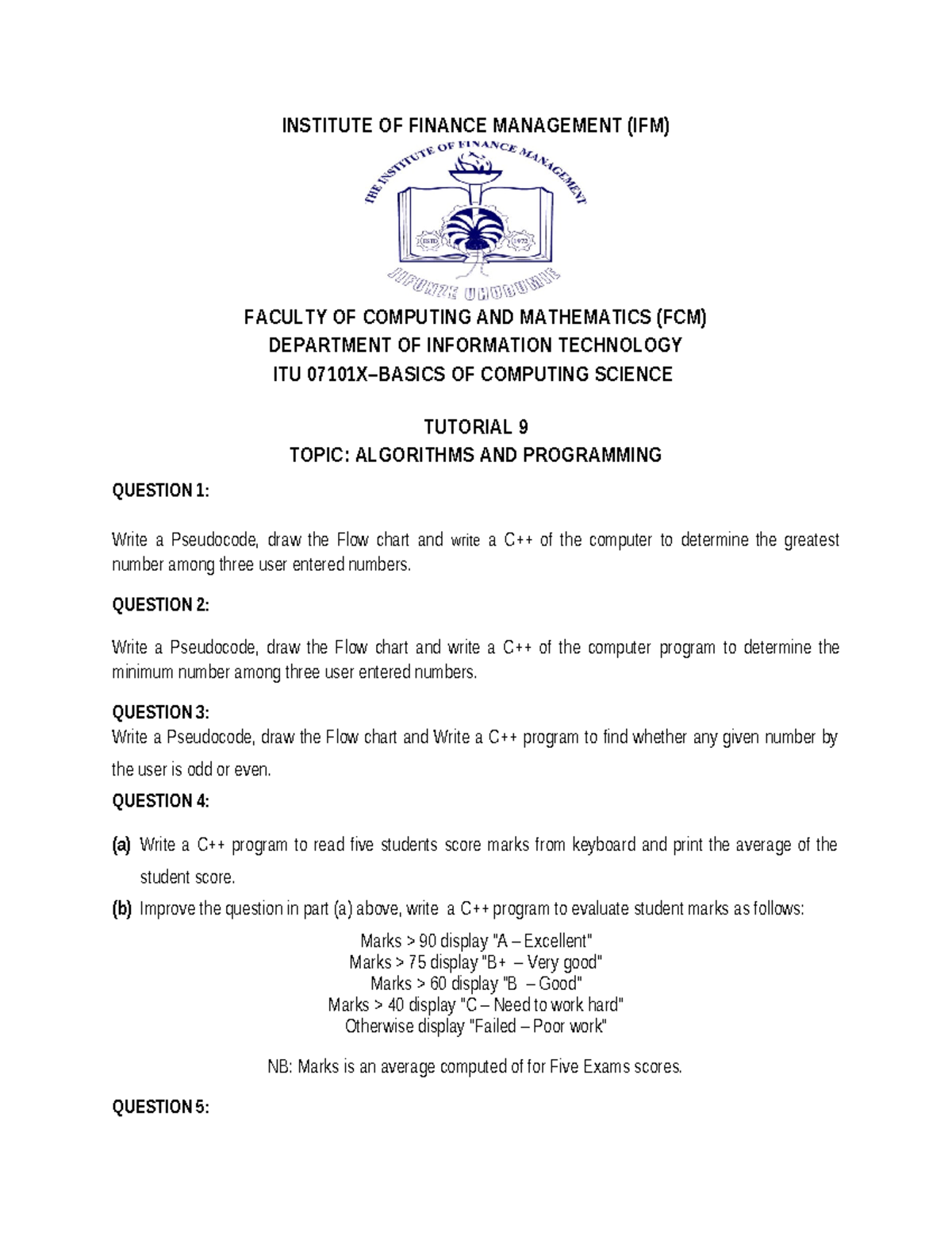 IFM FCM IT Tutorial 9: Algorithms & Programming Notes - Studocu