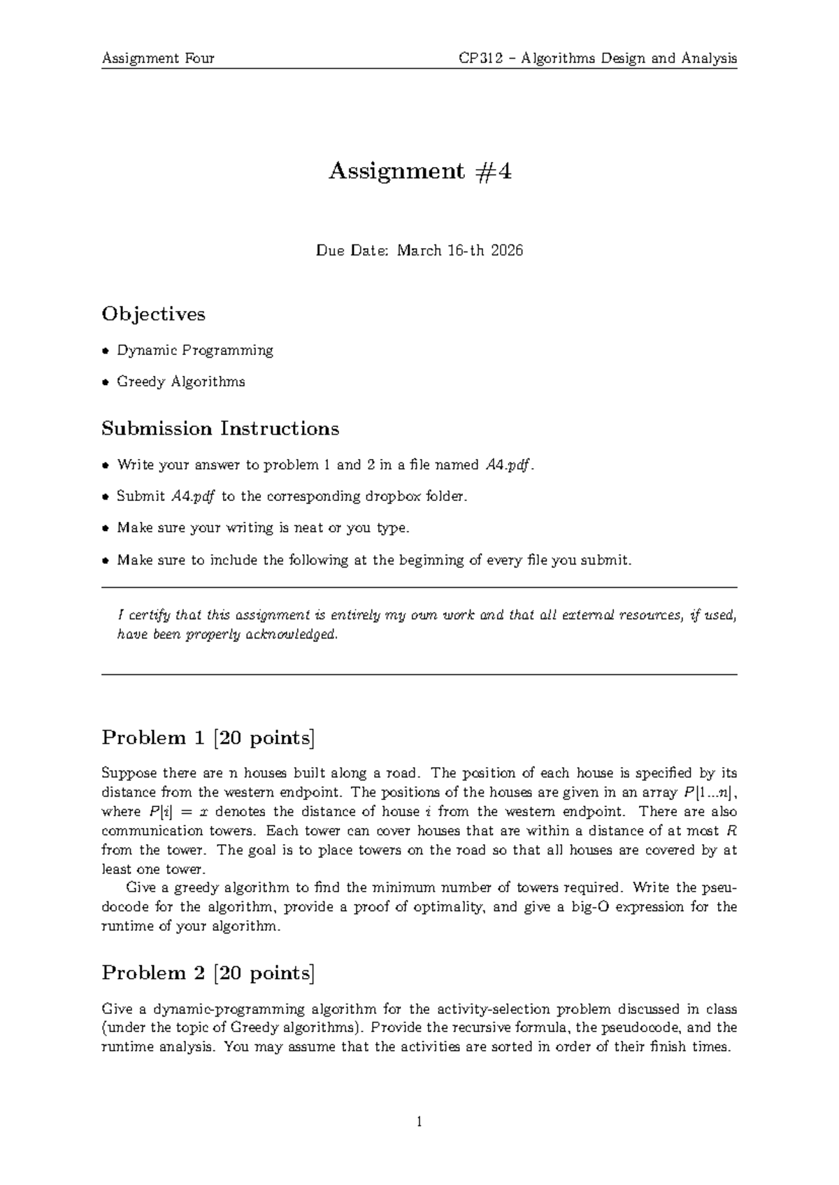 Assignment 4 CP312: Algorithms Design & Analysis - Dynamic Programming ...