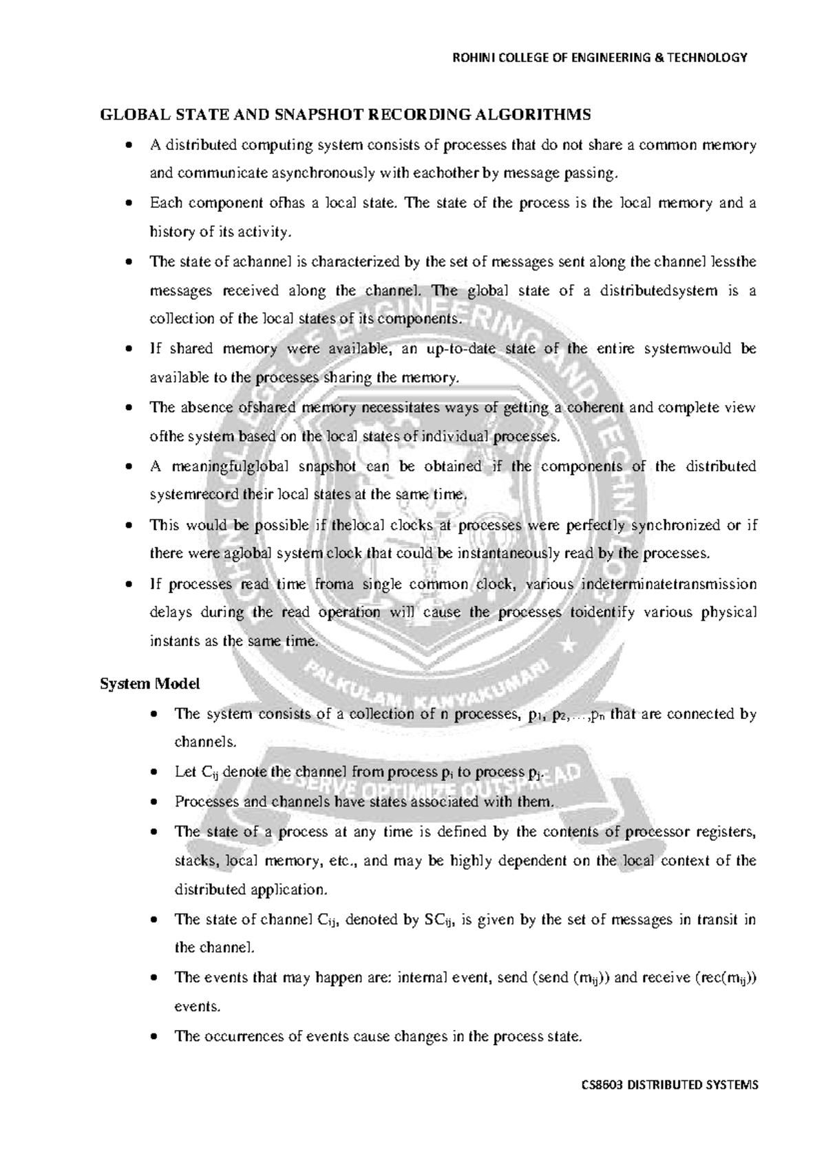CS8603 Distributed Systems: Global State and Snapshot Algorithms - Studocu