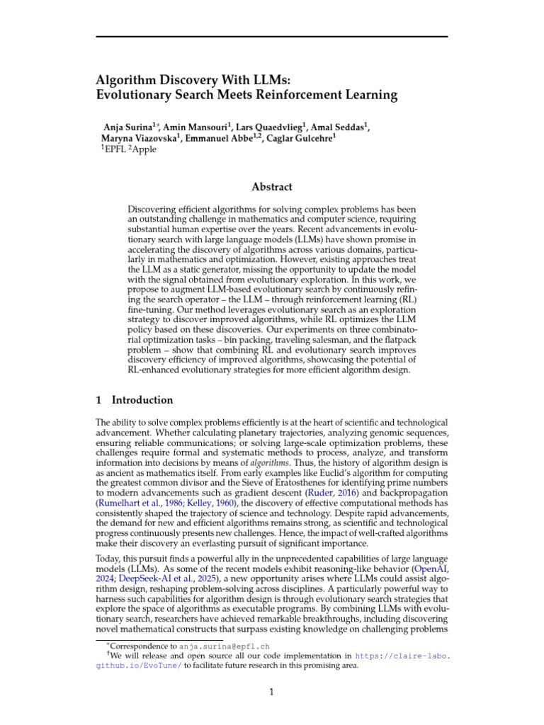 Algorithm Discovery With LLMs Evolutionary Search Meets Reinforcement ...