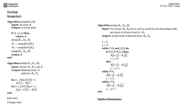 CSC 225 Unit 7: Merge Sort Algorithm Explained - Studocu