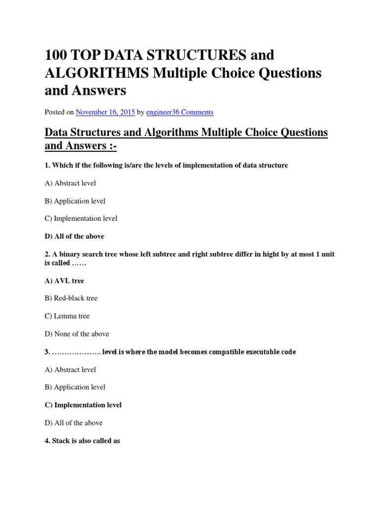 100 TOP DATA STRUCTURES and ALGORITHMS Multiple Choice Questions and ...