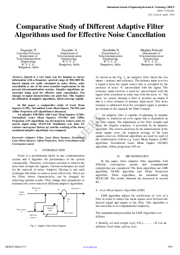 (PDF) IJERT-Comparative Study of Different Adaptive Filter Algorithms ...