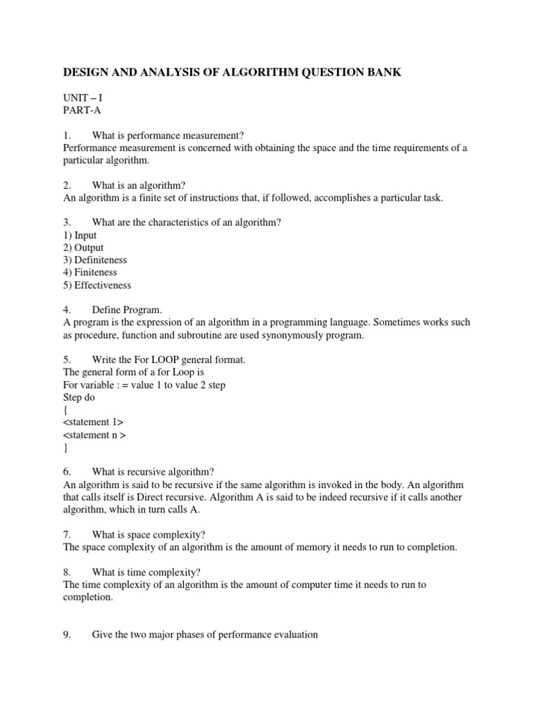 Design and Analysis of Algorithm Question Bank | PDF | Time Complexity ...