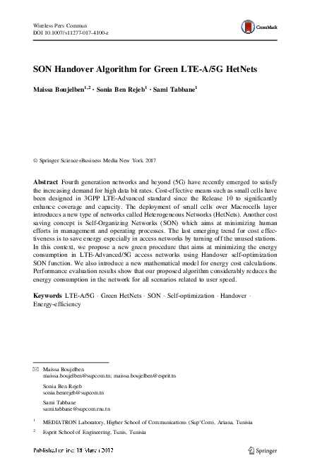 (PDF) SON Handover Algorithm for Green LTE-A/5G HetNets