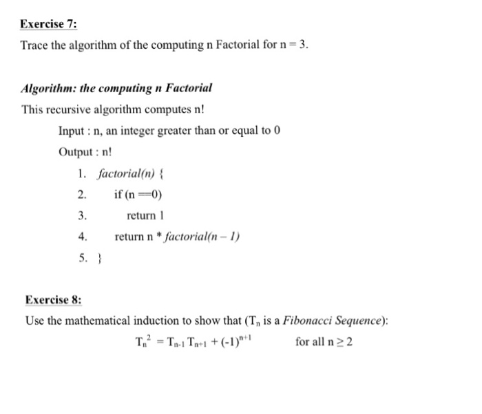 Solved Trace the algorithm of the computing n Factorial for | Chegg.com