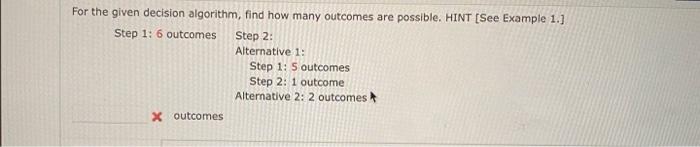 [Solved] For the given decision algorithm, find how many outcomes are ...