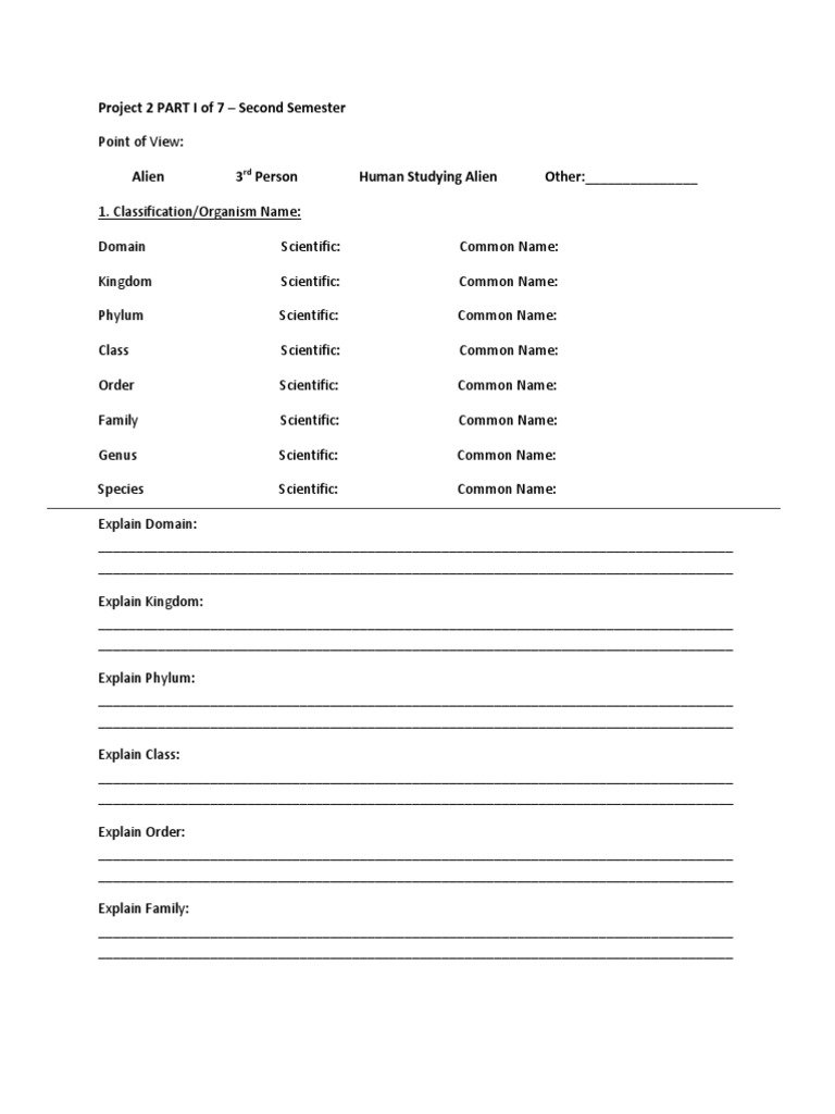 Alien Taxonomy Worksheet: Classifying Future Organisms
