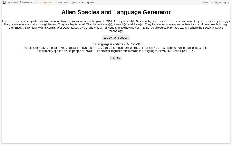 Alien Species and Language Generator