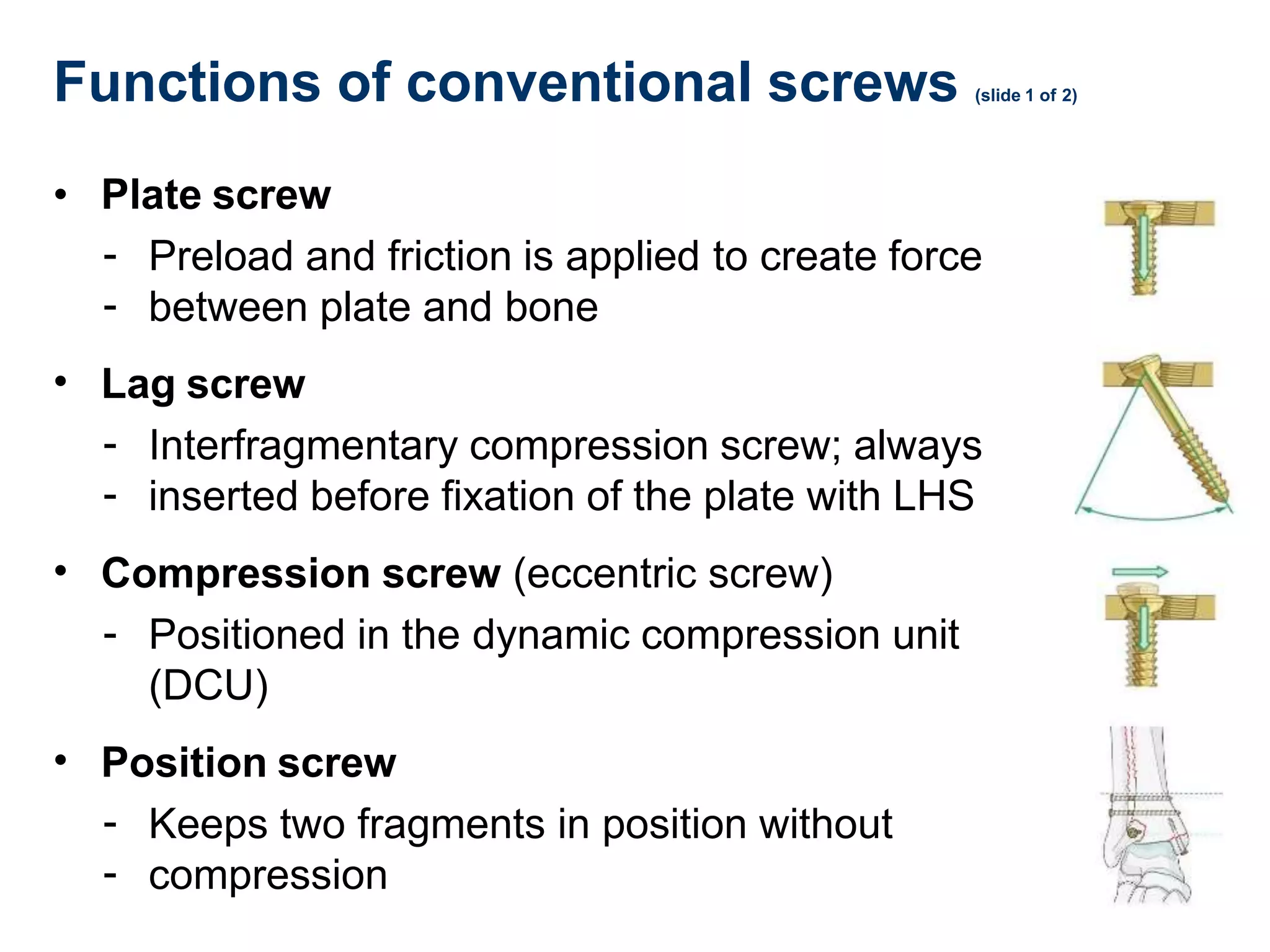 Mechanisms for the screw positioning, pin and stopper, and screw in ...