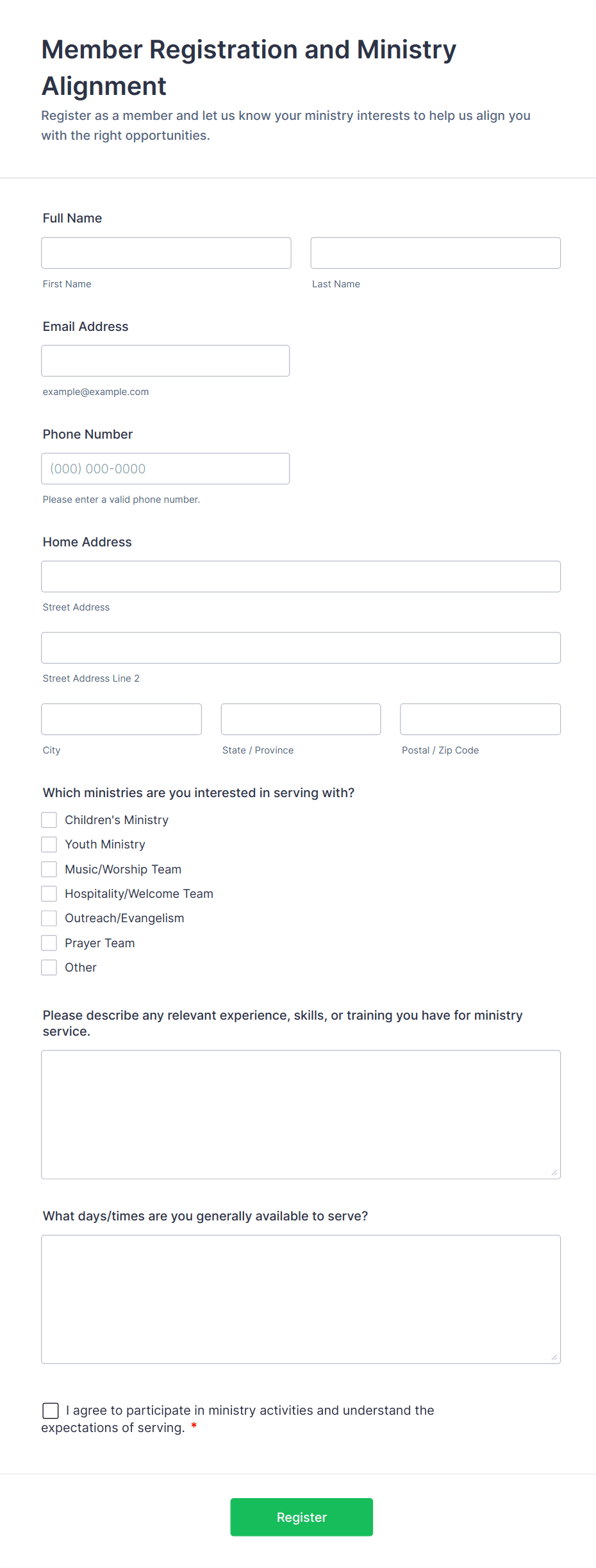 Member Registration and Ministry Alignment Form Template | Jotform