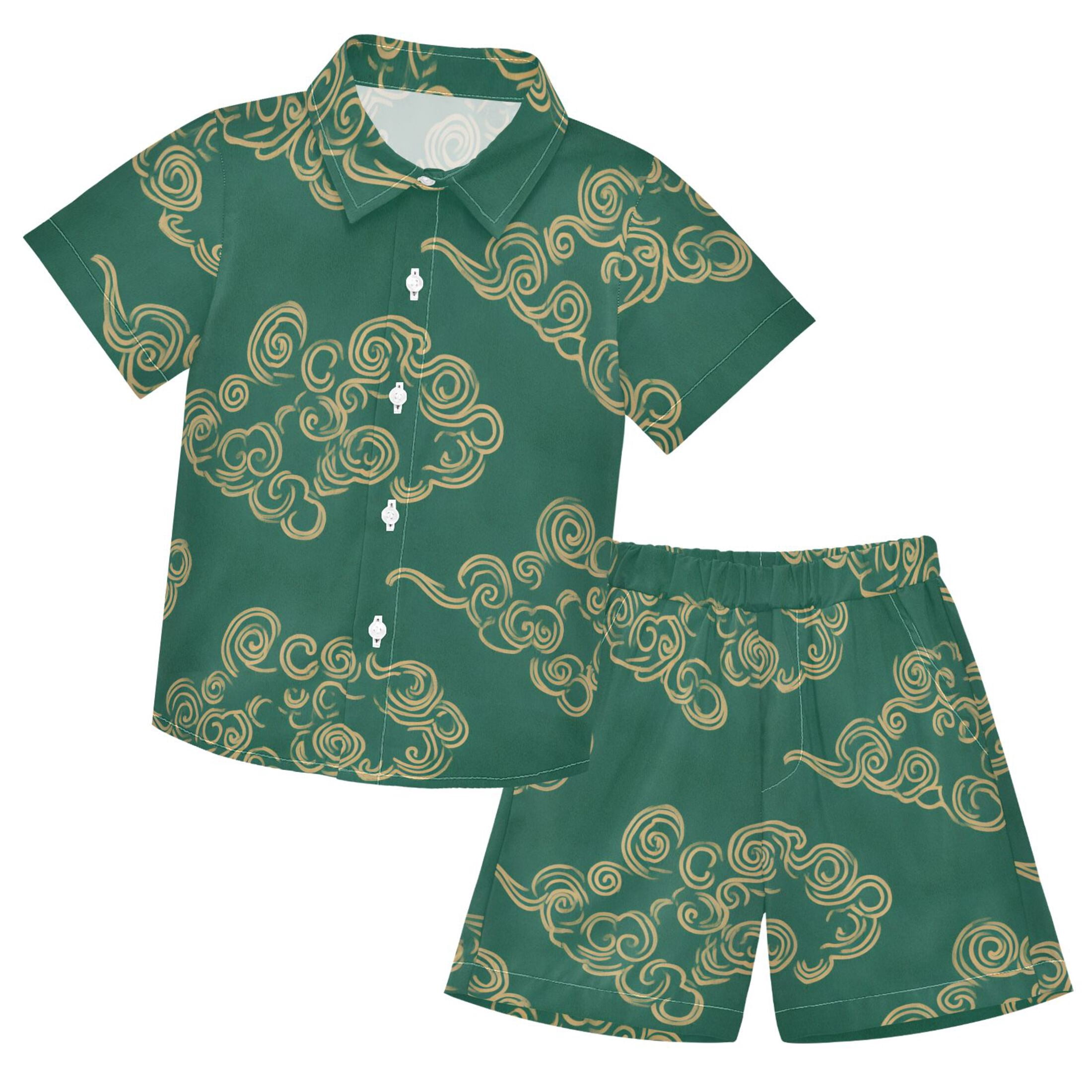 Auspicious Clouds Pattern Boys' Hawaiian Shorts Sets Button Down Shirts ...