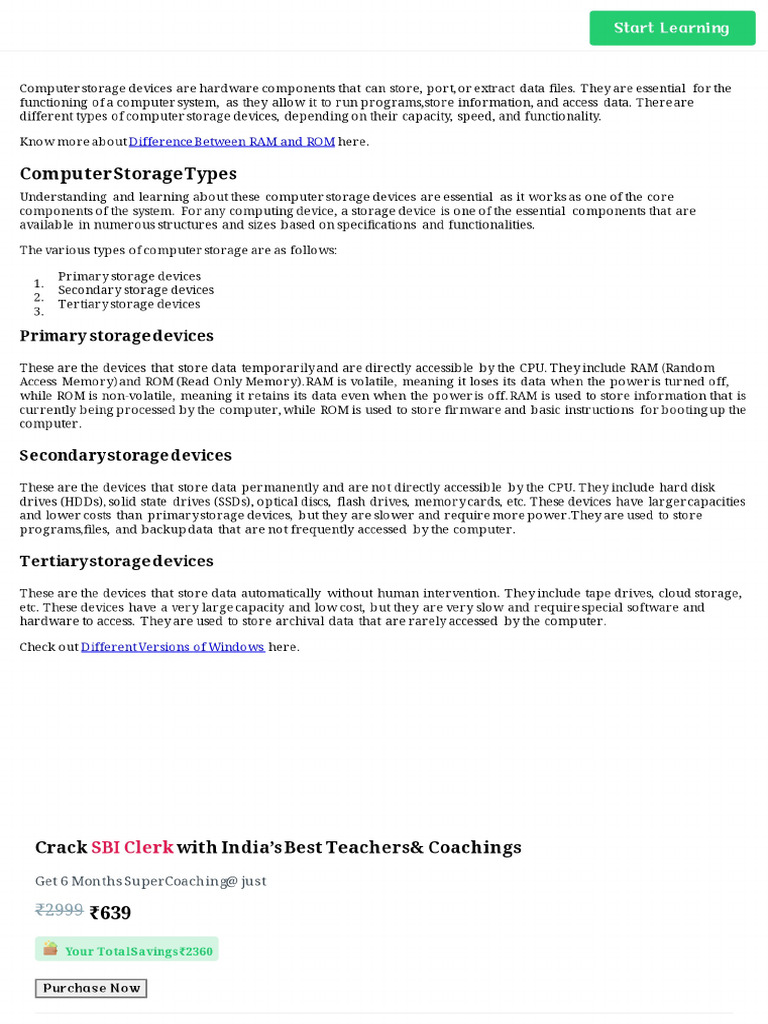 Types of Computer Storage - Definition, Names, and Functions | PDF