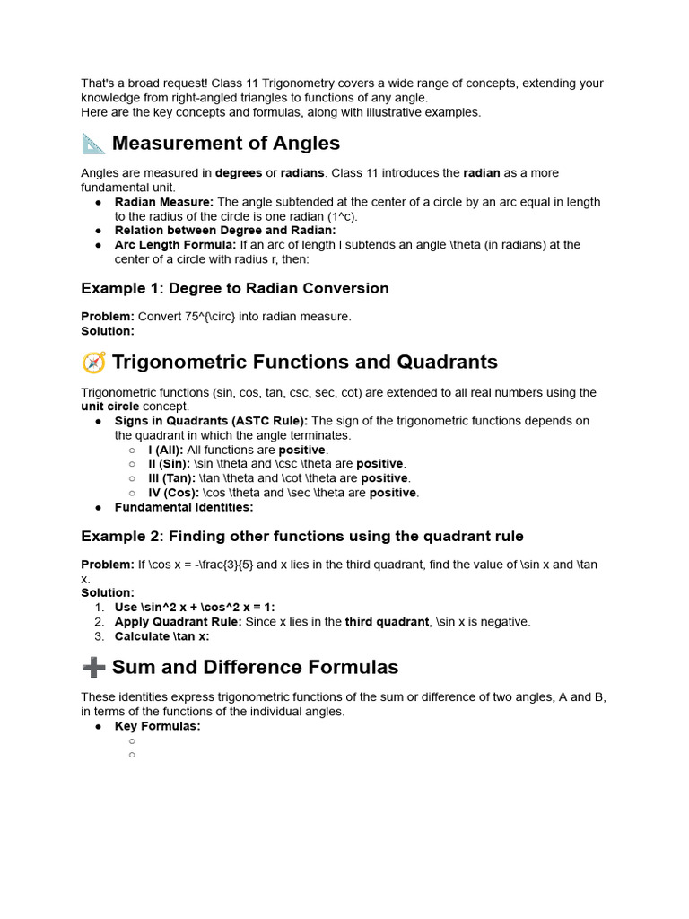 All Concepts of Trigonometry Class 11 With Example.. | PDF ...