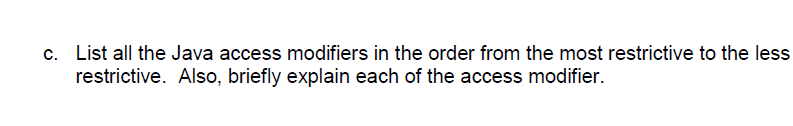 Solved C. List all the Java access modifiers in the order | Chegg.com