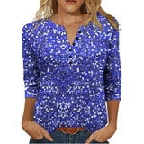 Women's V-Neck Button Front Three Quarter Sleeve Raglan T-Shirt Loose ...