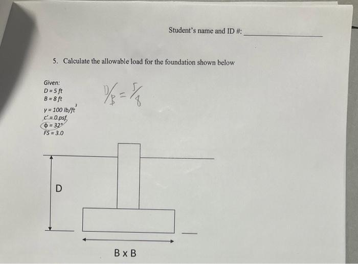 Solved 5. Calculate the allowable load for the foundation | Chegg.com