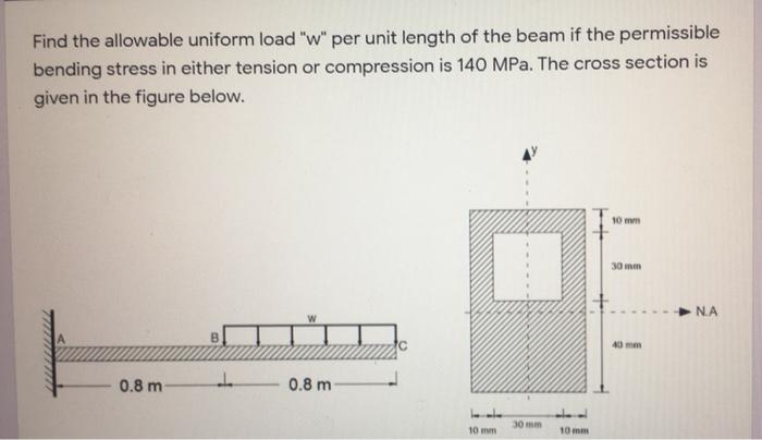 Solved Find the allowable uniform load "w" per unit length | Chegg.com