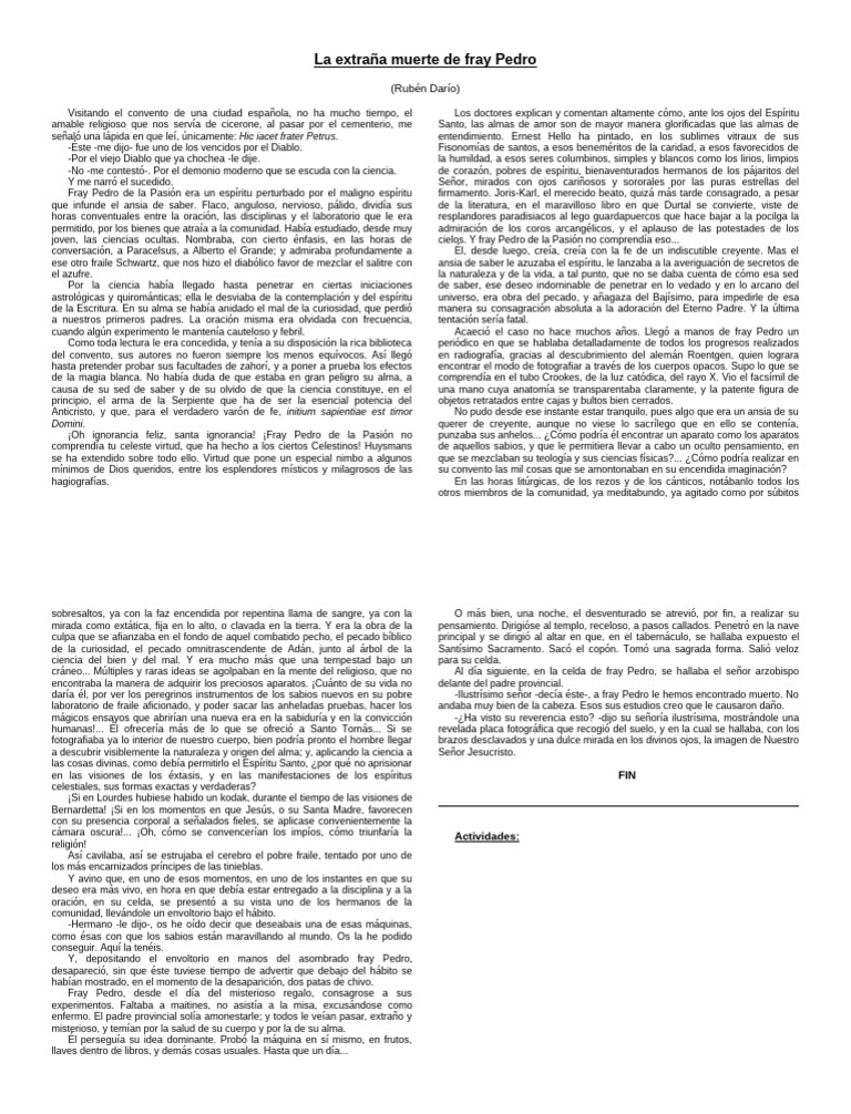 La extraña muerte de fray Pedro ruben dario | PDF | Alma | Rayo X