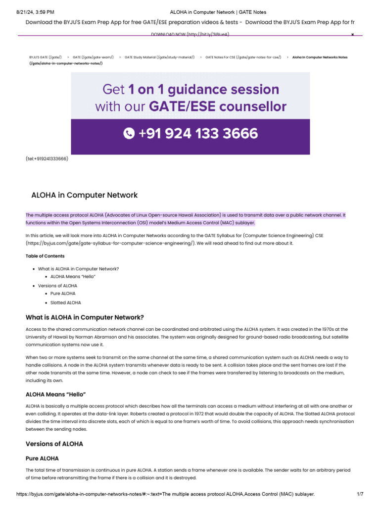 Lec 7 All About Aloha || Computer Networks || GATE Insights Version ...