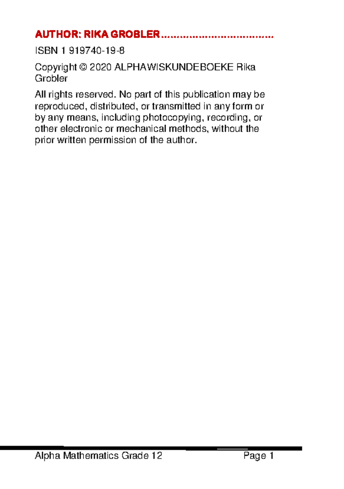 Eng revision gr 12 alpha maths - AUTHOR: RIKA GROBLER