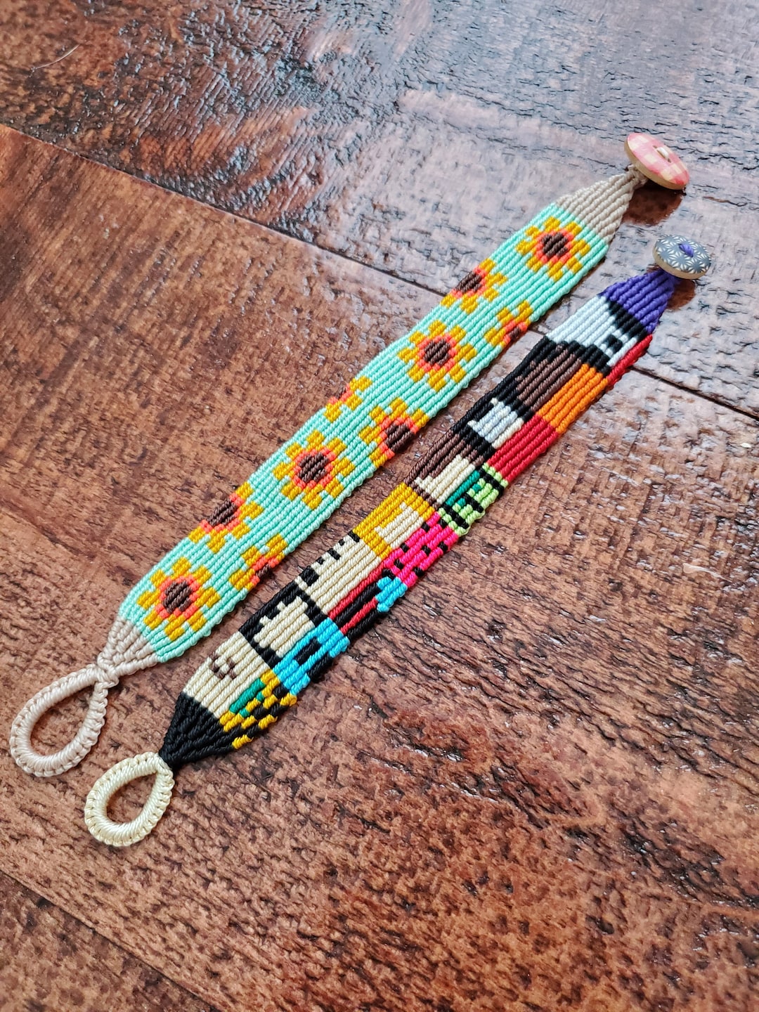 Macrame Friendship Bracelets Alpha Pattern Peanuts Sunflowers Button ...