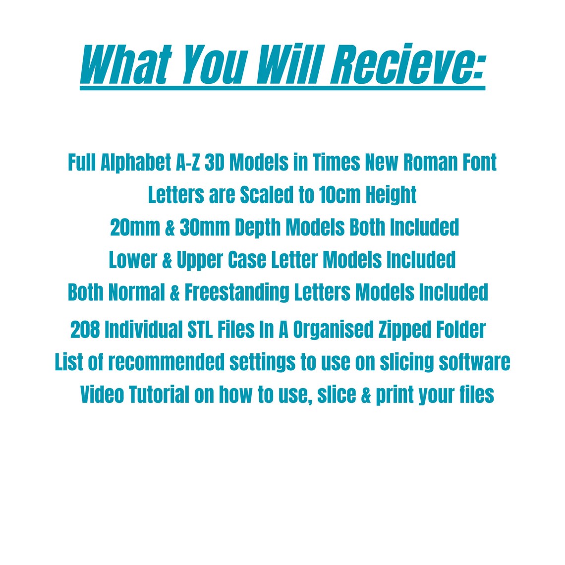 3D Letters Full Alphabet A-Z Times New Roman Font 3D Printing STL 208 ...