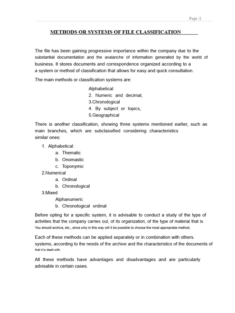 Classification of Files - Office Filing and Indexing