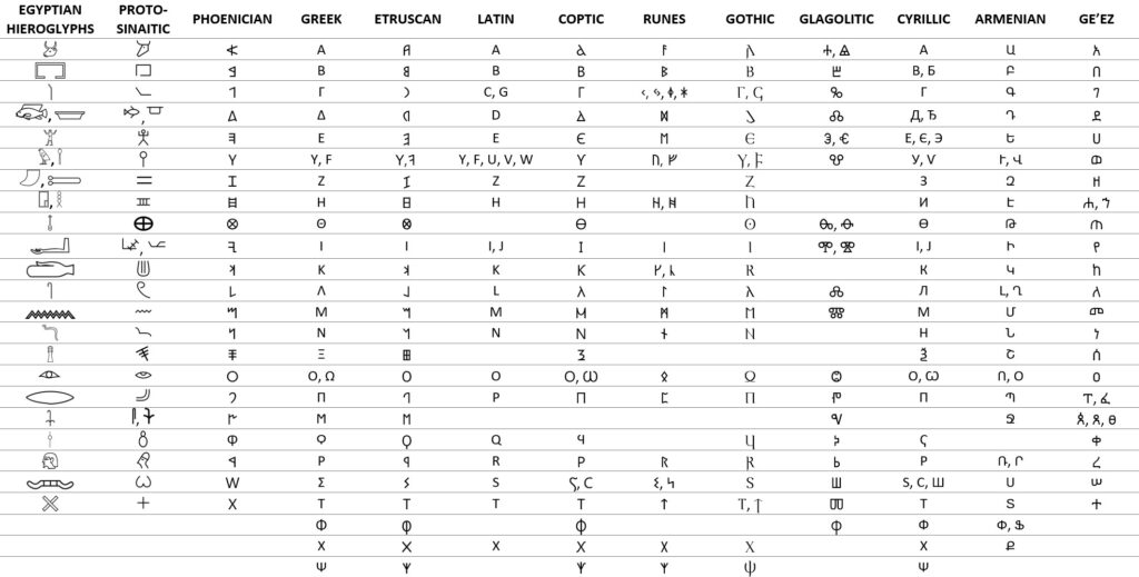 Charts Depicting the Evolution of the Alphabet, and the Writing Systems ...