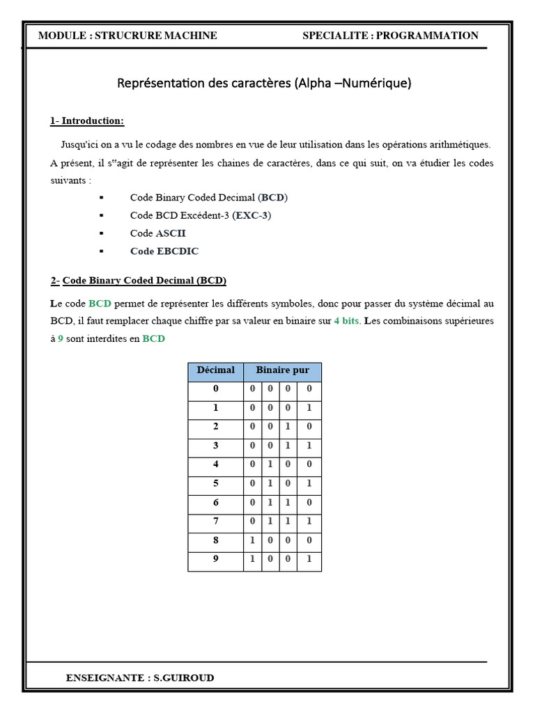 Représentation Des Caracteres (Alpha Numerique) | PDF | Décimal codé ...
