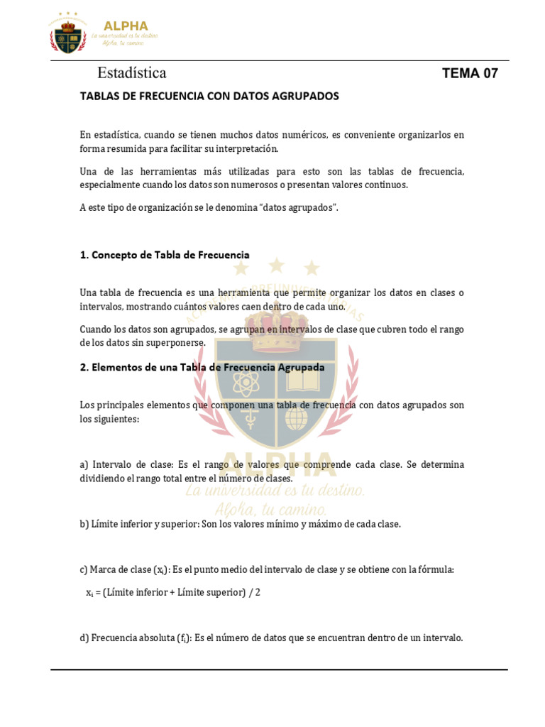 ACADEMIA ALPHA TEMA 07 DE ESTADISTICA - TABLAS DE FRECUENCIA AGRUPADOS ...