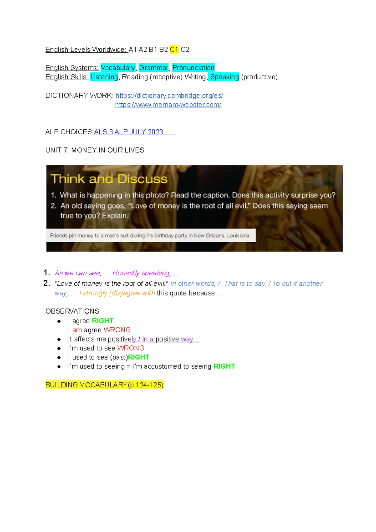 ALS 3 Class Notes -JULY 2023 - English Levels Worldwide: A1 A2 B1 B2 C1 ...