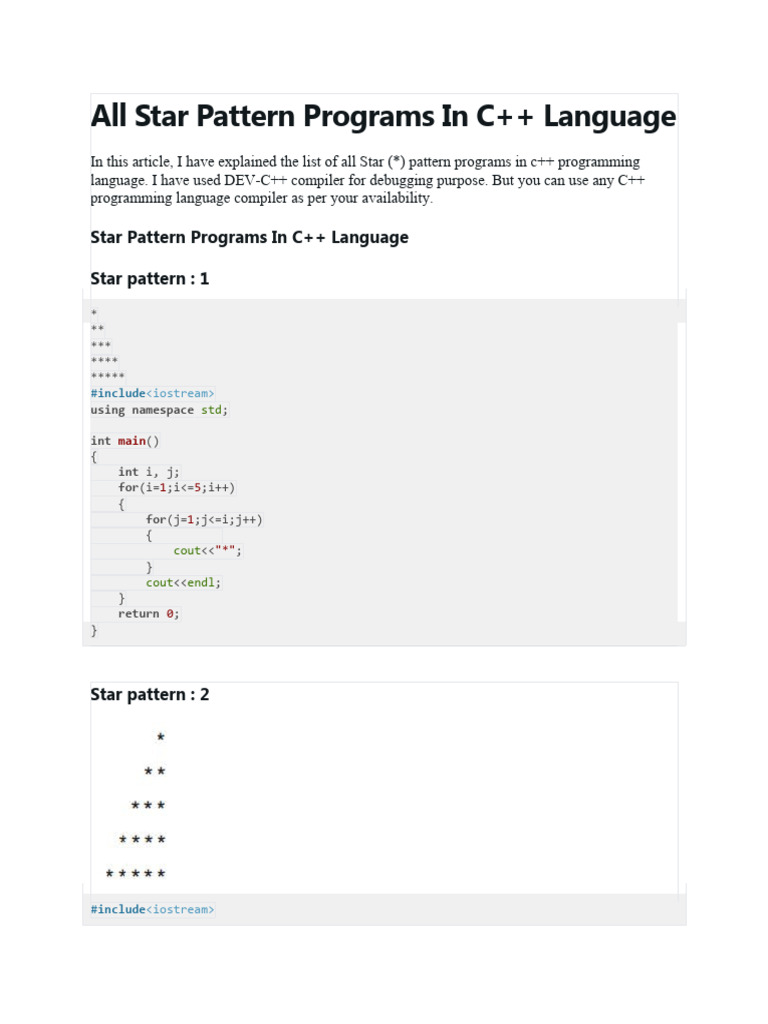 All Star Pattern Programs in C | PDF | Namespace | Computer Programming