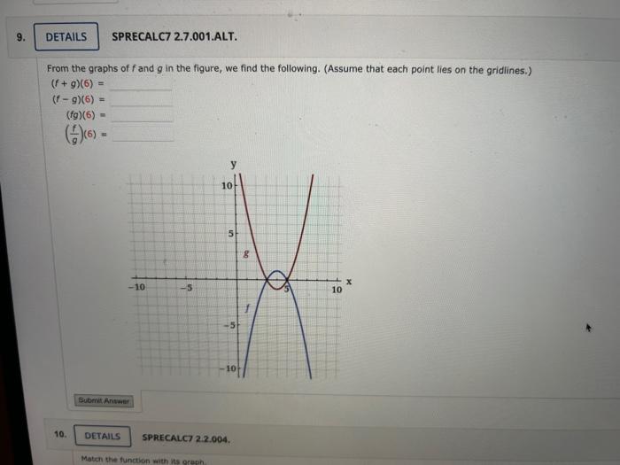 Solved 9. SPRECALC7 2.7.001.ALT. From the graphs of f and g | Chegg.com