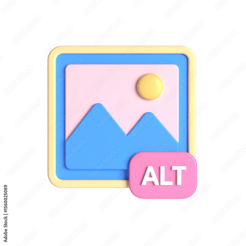 ALT Text Image Icon: A vibrant 3D rendered icon depicting an image file ...