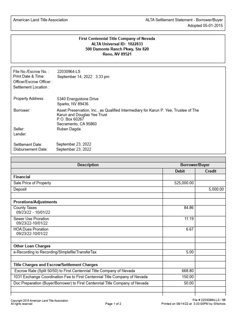 1102 Green Pine #G-1 ALTA - Settlement - Statement - Combined | PDF ...
