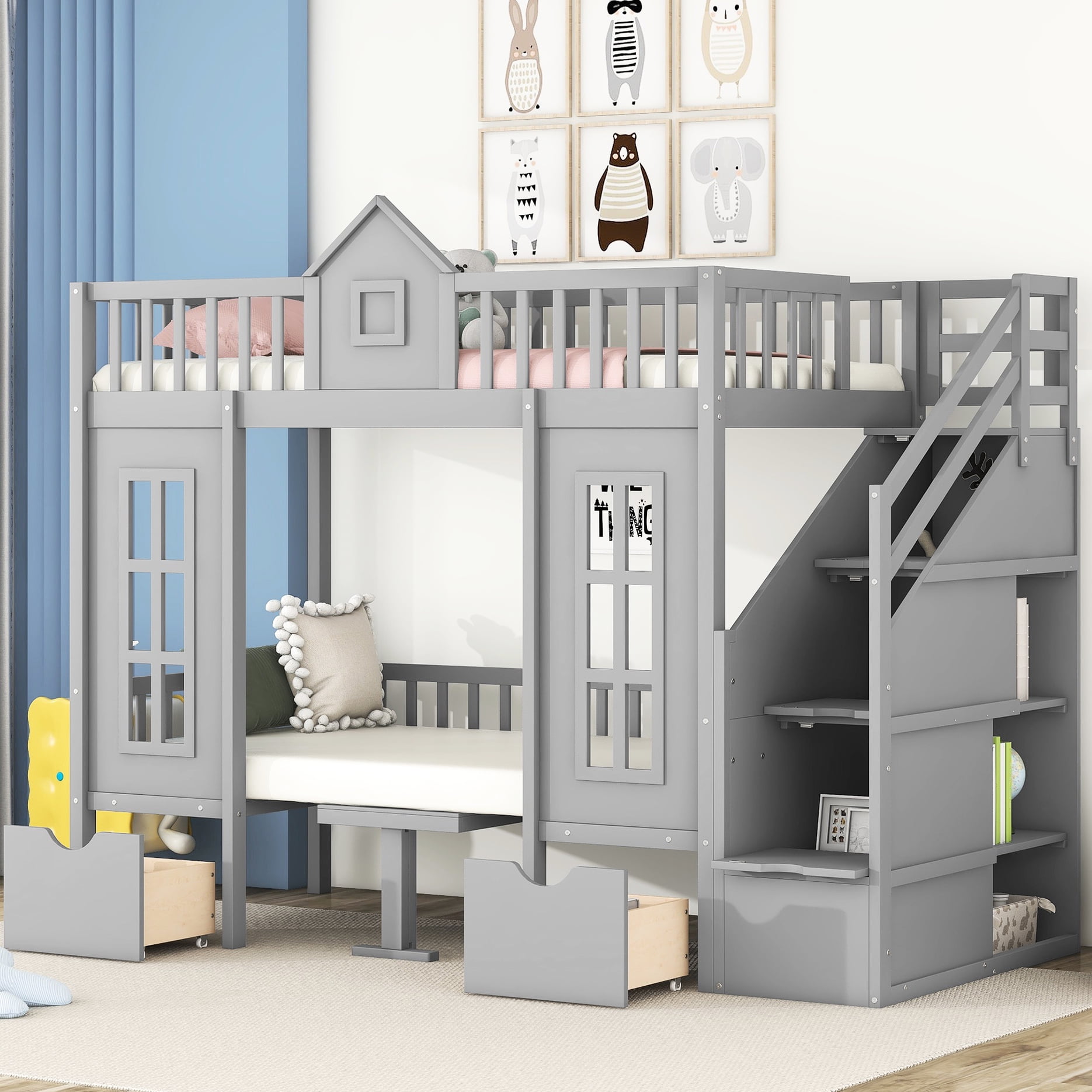 Gray Twin Size Bunk Bed With Alterable Desk, Construction For ' Space ...