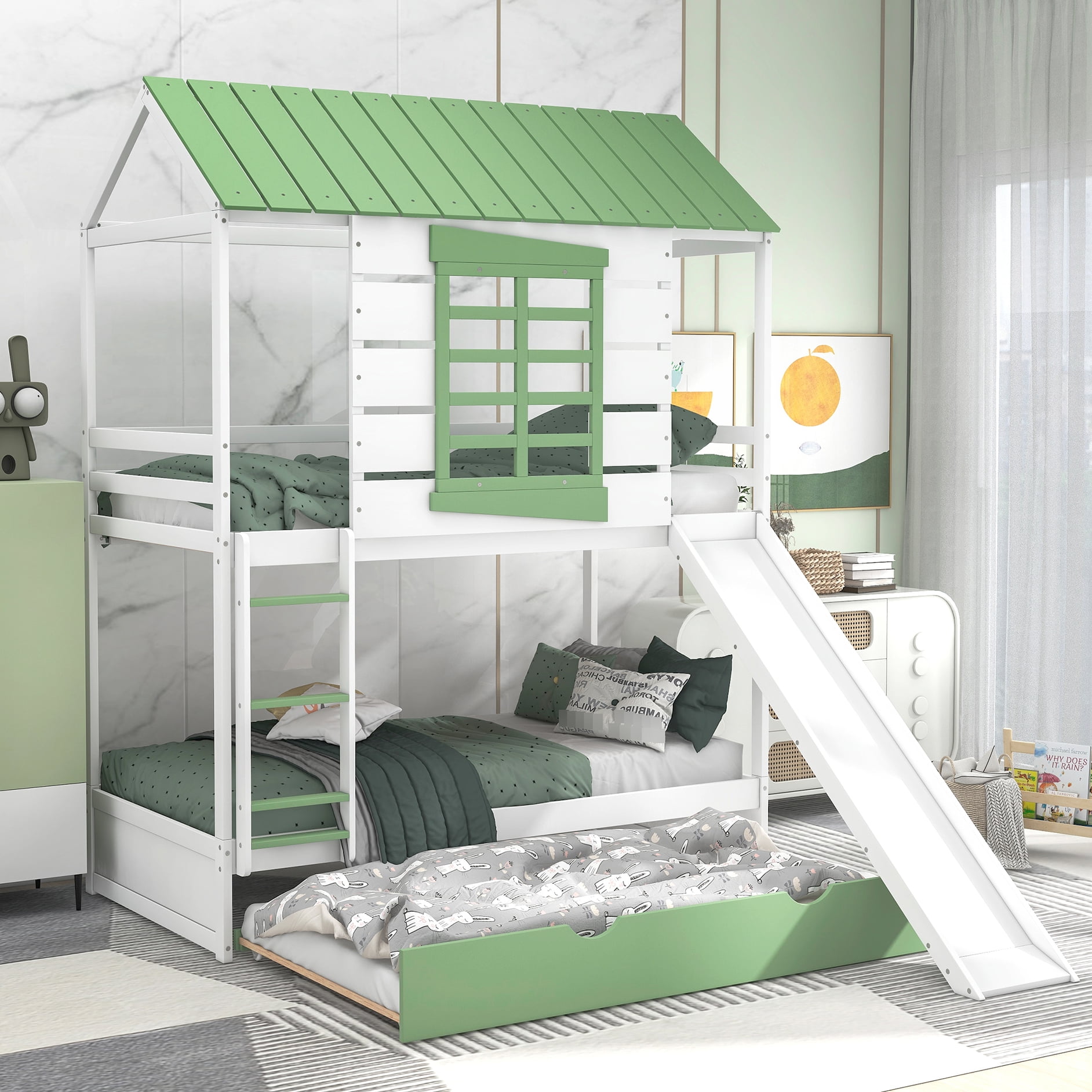 White + Twin Over Bunk Bed With Alterable Slide And Trundle - Tailors ...