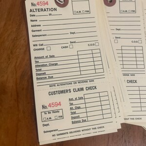 10 Alteration Tags Tickets Merchandise Claim Check Hang Tags 2 Part ...