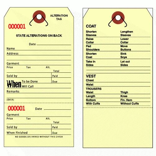 Retail Repair Tags – Alteration Tags and Layaway Tags