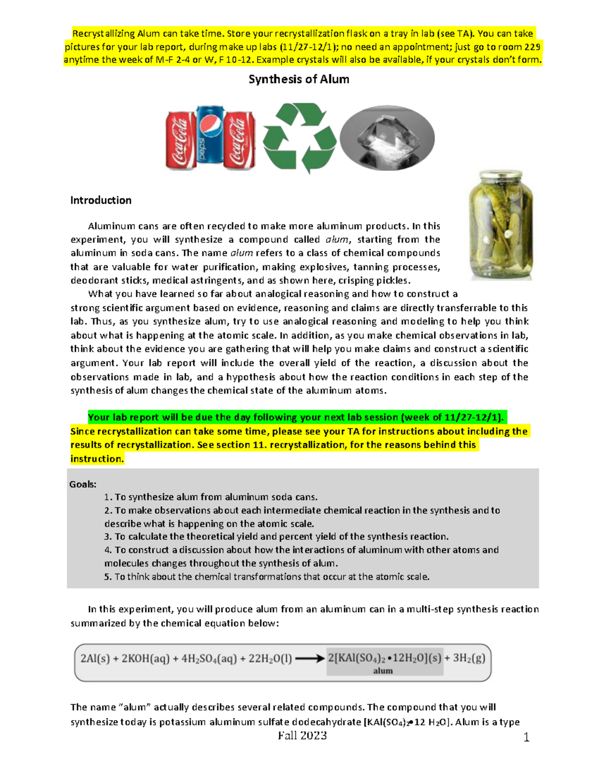 Aluminum Lab - pictures for your lab report, during make up labs (11/27 ...